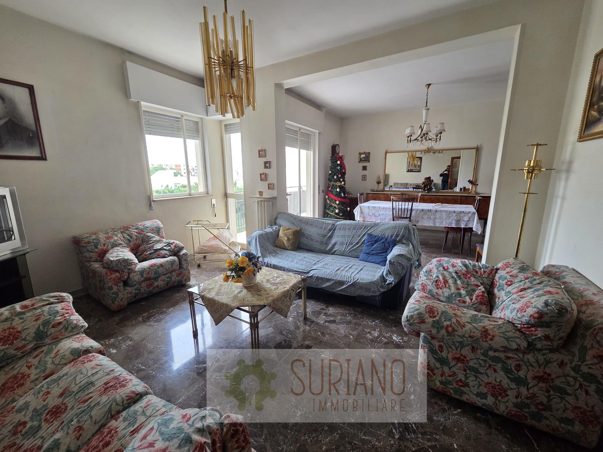 Vi proponiamo in una delle zone più richieste, a due passi da Via Trani e dalla Pineta con vari collegamenti e servizi precisamente in Piazza Ss. Trinità un ampio appartamento sito al quarto piano dotato di ascensore di 145mq composto da: ingresso, cucina, doppia sala, camera da letto, due ampie camerette, un bagno padronale e un wc di servizio. Con doppia esposizione. Completa la soluzione un ripostiglio e box auto al piano terra.